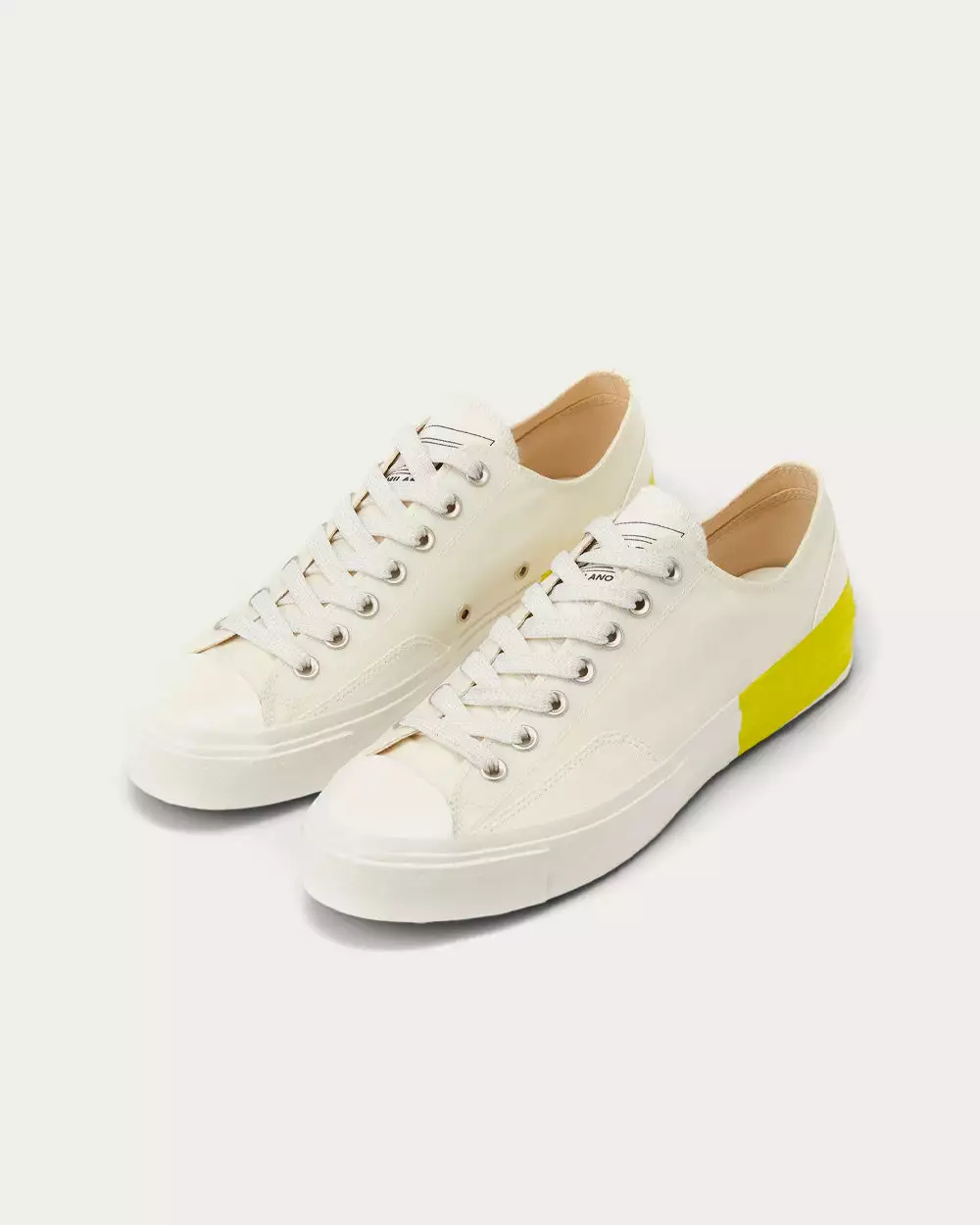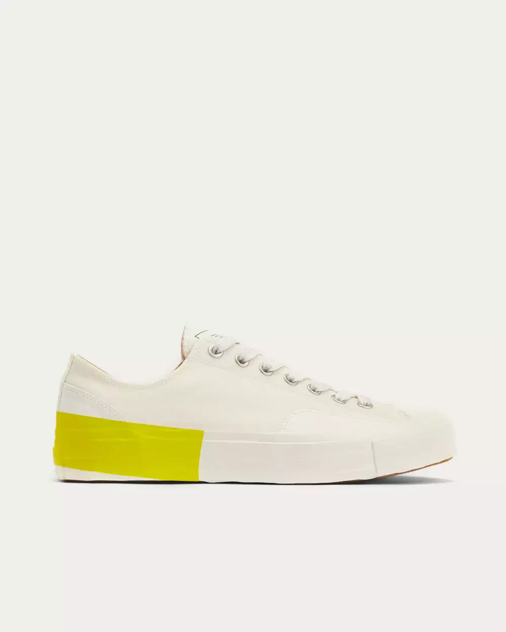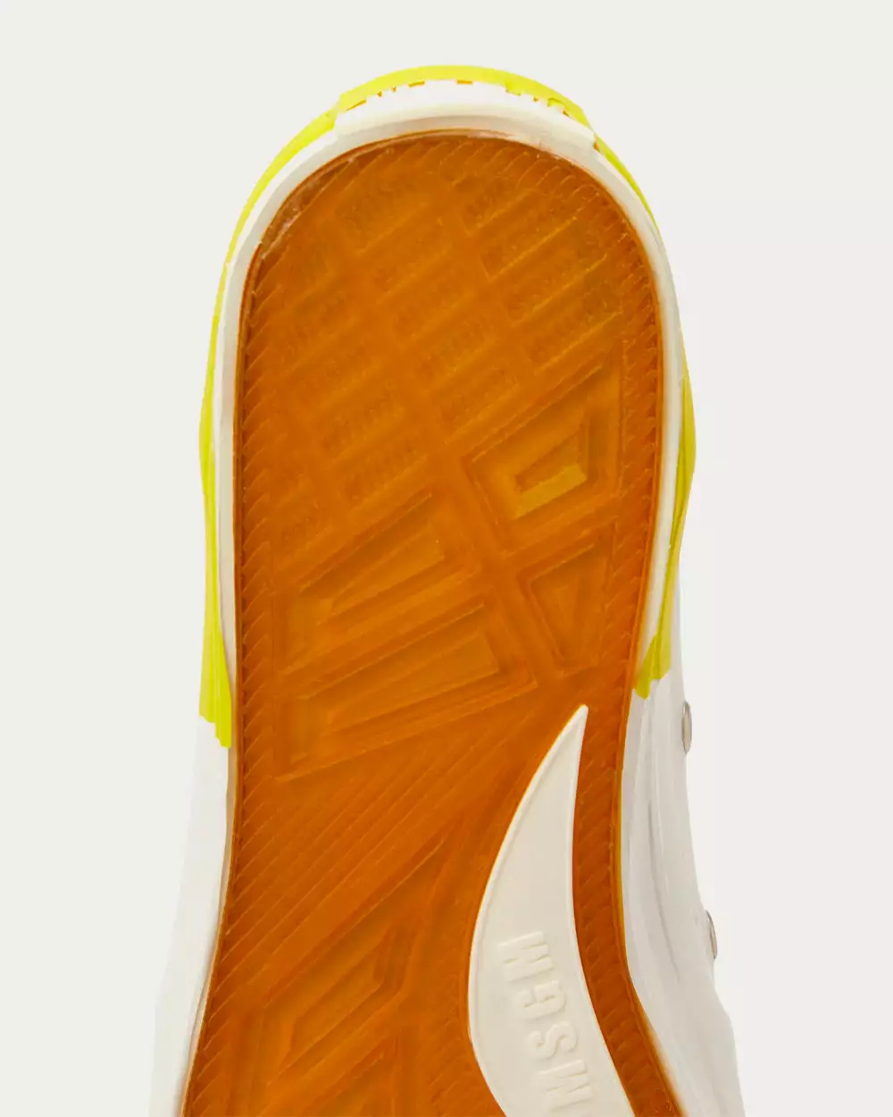 MSGM Tape Appliqued Vulcanized Canvas White / Yellow Low Top Sneakers